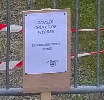 Des pierres risquant de se détacher du toit de la sacristie, la mairie de Sainte-Céronne a interdit le passage derrière l’église.