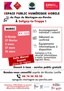 L’espace Public Numérique Mobile du Pays de Mortagne-au-Perche organise des ateliers à SOLIGNY LA TRAPPE.